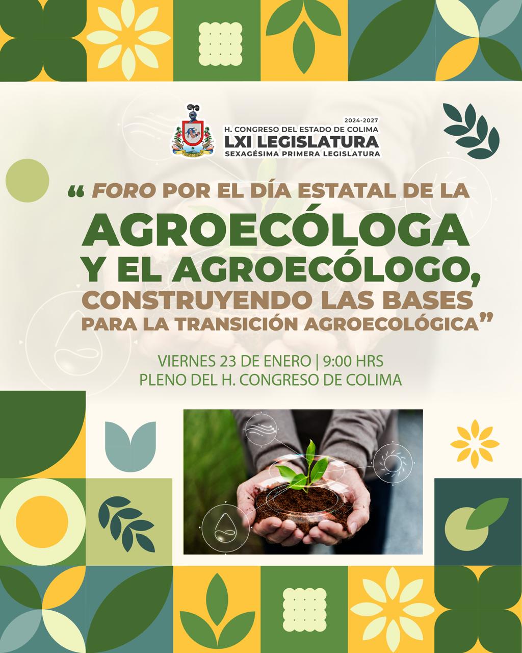 A partir de las 9:00 horas del viernes 23 de enero, se llevará a cabo el “Foro por el día estatal de la y el agroecólogo, construyendo las bases para la transición agroecológica”, en las instalaciones del H. Congreso del Estado.
