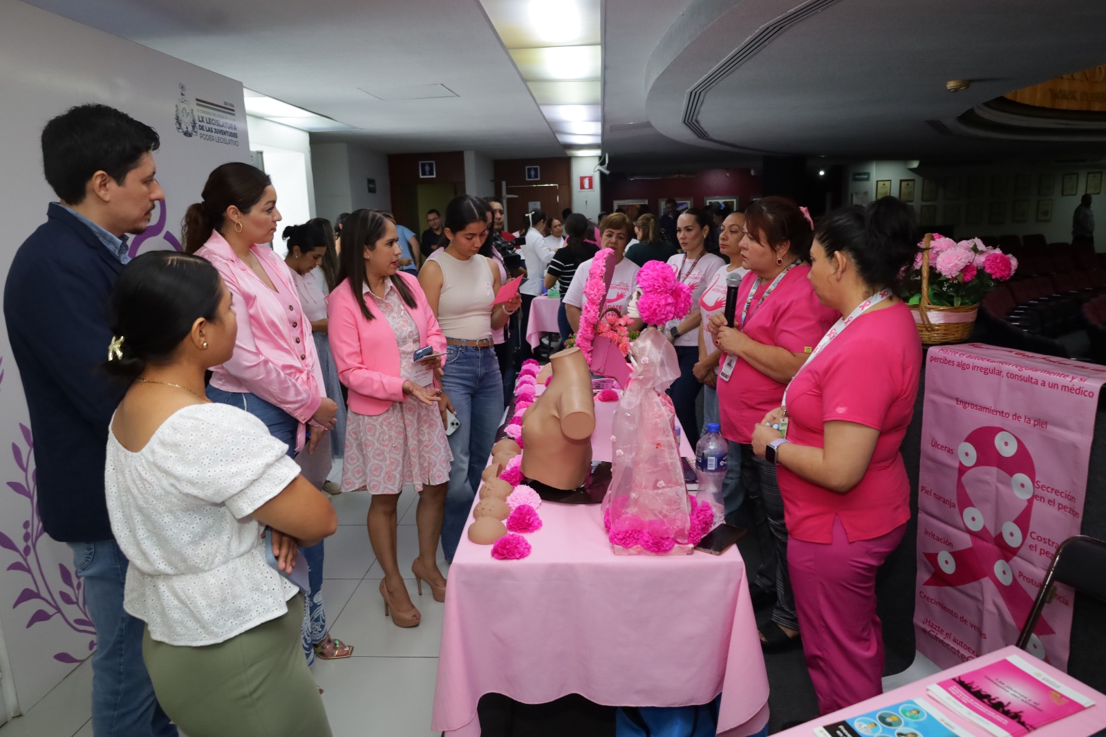 En el desarrollo de la feria, la doctora Rosa Elva Alcalá Márquez, coordinadora del Programa Cáncer de la Mujer de la Jurisdicción 1 de la Secretaría de la Salud, impartió la charla “Sensibilización sobre Cáncer de Mama y Auto Exploración”, en la cual compartió los factores de riesgo que pueden llegar a provocar el padecimiento, la importancia del historial clínico, las maneras de prevenirlo y las acciones para una atención integral.